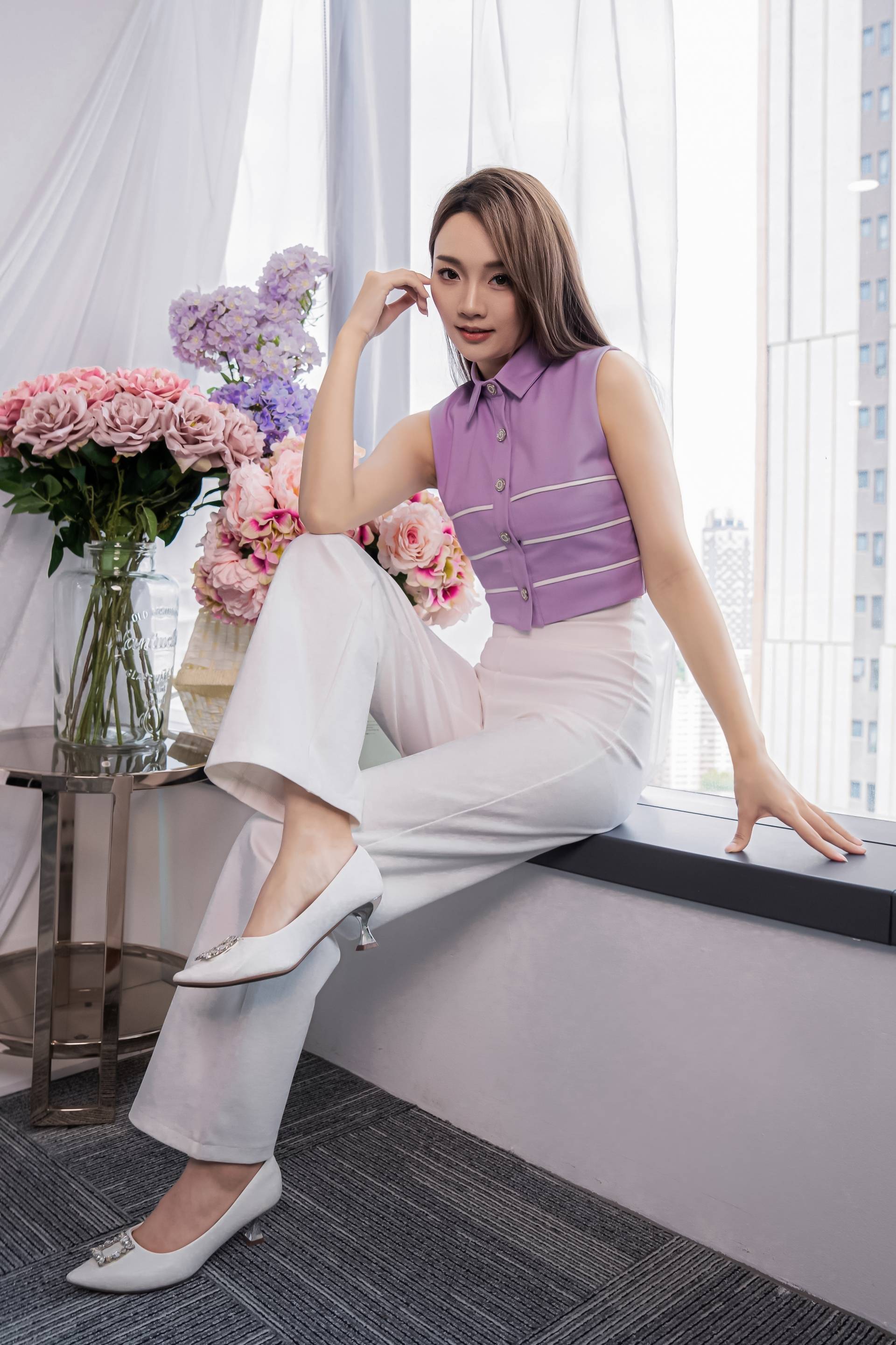 Feather-Detail Blouse & Flared High-Waist Skirt