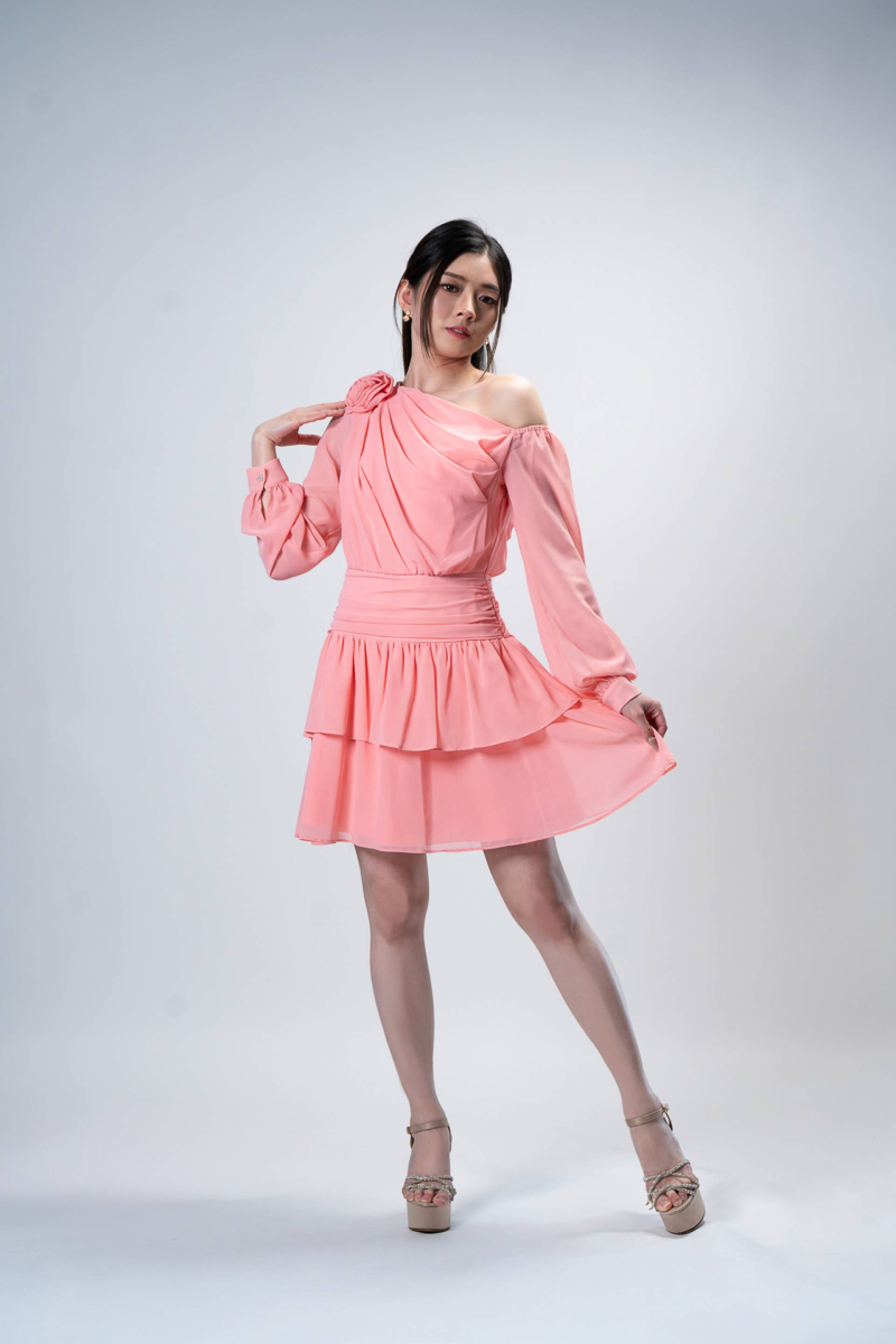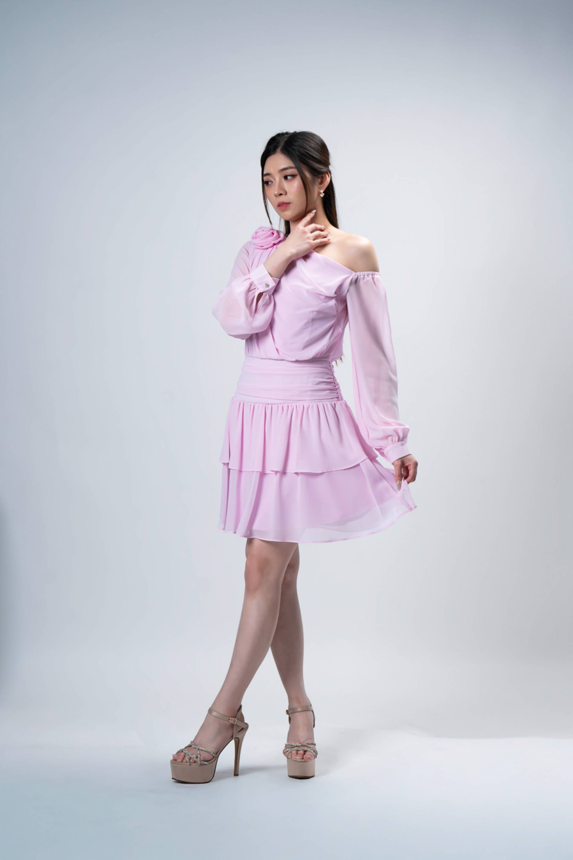 Rose Accent Chiffon Midi Dress