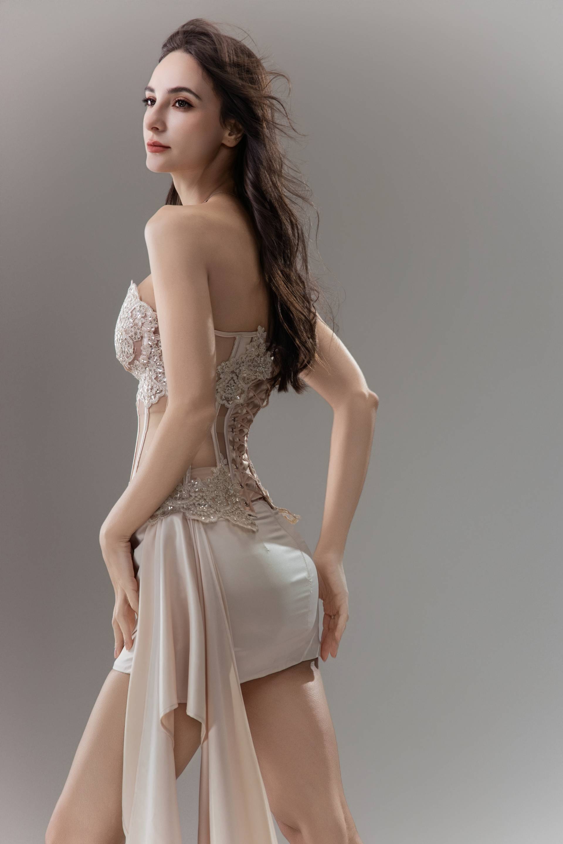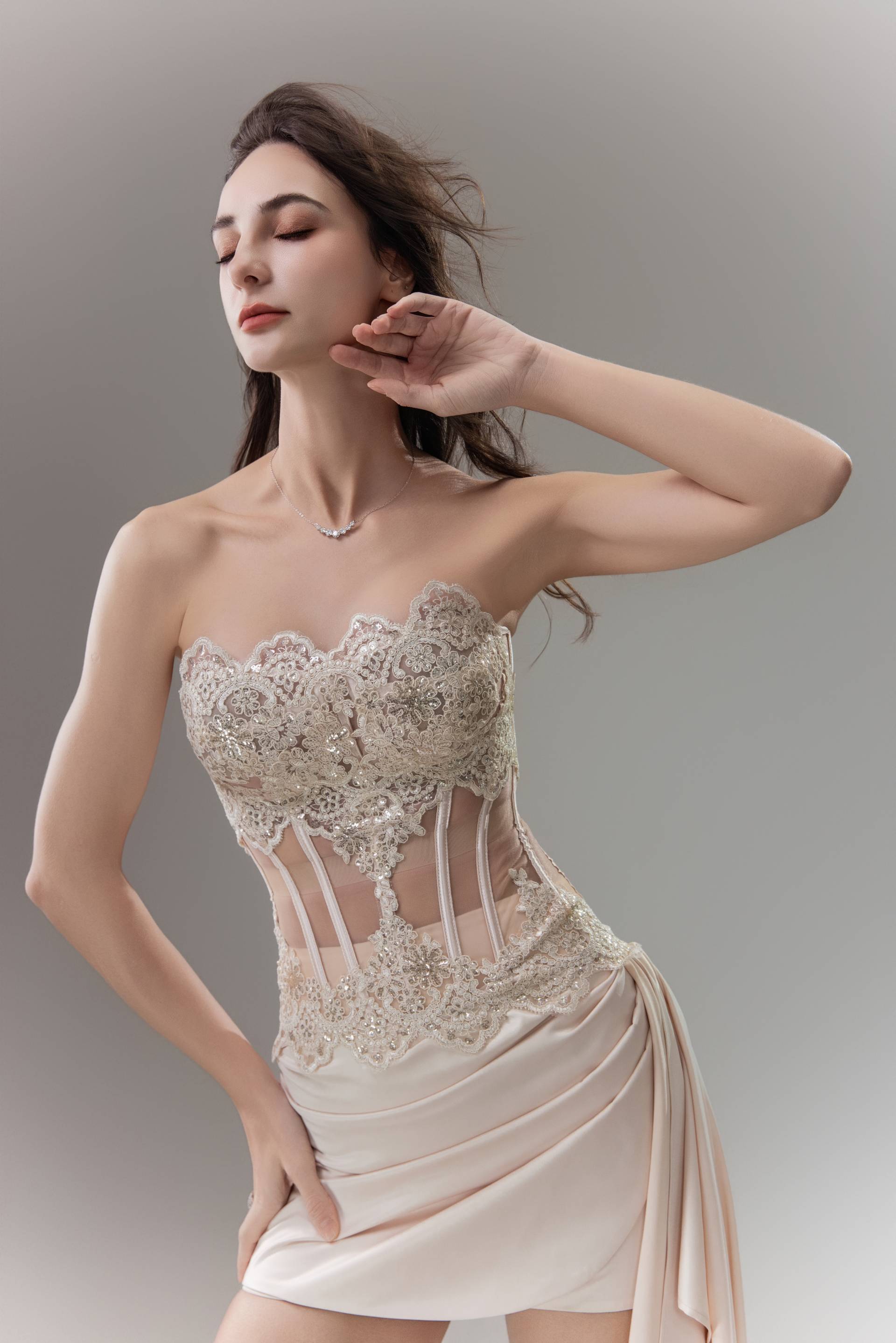 Feather-Detail Blouse & Flared High-Waist Skirt